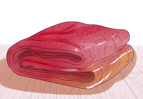 Bring blankets. Once you determine what environment and temperature range you will be sleeping in, gather up the blankets you will need. You will require thicker blankets for colder temperatures and lighter blankets for warm nights. If there will be a range of temperatures, then bring multiple blankets of various thickness to use as layers. Camping on the beach can be uncomfortable with sand getting into everything. You can use flannel sheets instead of cotton here because the loose weave will allow sand to pass through the material. It can be helpful to bring an old comforter from your house to use as a blanket because it's familiar so might help you fall asleep.