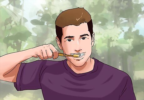Store food. Secure all your food and anything scented outside your tent, if you have one, or away from your sleeping location. If you spill some of your food, collect it and put it in approved bins. Do not spit out toothpaste near where you will sleep either. If your clothes have collected the scent of food or food residue, do not wear them to sleep.