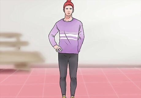 Wear appropriate clothing. Don't wear bulky clothing before you slip into your bag. This can make the sleeping bag's ability to trap body heat less effective. Long underwear and clean socks are warm and also prevent body oils from getting on your blankets and mats. Sweaty or damp clothing always needs to be taken off as soon as possible. You can put extra clothing outside of your sleeping bag to add more insulation if needed. Wear a beanie or other type of hat. Your head and face can get very cold since heat escapes from exposed areas. Covering these areas will go a long way to keep you warm. You can also cinch your hood to keep heat in.