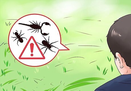 Check for bugs. When you choose an area, check for signs of ants and other pests before making your bed. Always shake out your bag and blankets before you go to sleep to make sure there aren't any insects, scorpions, spiders or snakes hiding in there. If you can, elevate yourself above the ground on something to avoid being near where insects usually crawl.