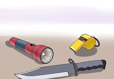 Adapt to your situation. Temperatures can drop quickly after sunset and things can get very dark. Be prepared by keeping layers of clothing and other forms of insulation as well as flashlights or a headlamp in your car and on your person if you are hiking or camping. For safety, a whistle, knife or other tool can also be useful. Be prepared for nighttime bathroom breaks. Put a flashlight or headlamp near you, along with your shoes.