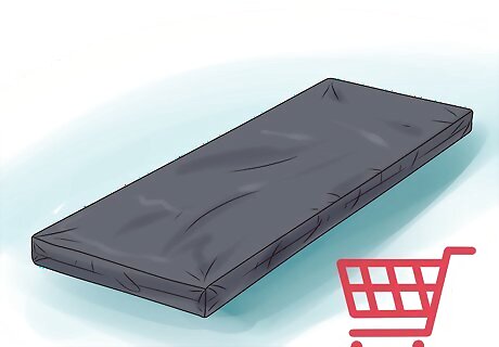 Purchase a foam pad. Foam is a durable and dense material that is nearly indestructible with a low weight and good insulation value. Foam pads are very useful if you will be sleeping on very cold, frozen or snowy ground as well as rough ground that could puncture other types of material. It is also an inexpensive option but can be bulky and may not provide enough cushion for some people. You can get a compressed foam mattress covered with waterproof nylon that provides good insulation. The foam expands once the twist valve is opened. You can also blow into the valve to get the cushioning more to your liking. If you are backpacking, consider a 1" to 2" thick pad so that it is lighter to carry and takes up less room. A thicker pad for better comfort can also be purchased if you prefer. Fitted sheets might be available for some pads. If your back gets sore lying flat on the ground on something like thin foam, then use a jacket folded in half lengthwise and rolled into a cylinder underneath your pad for the small of your back.