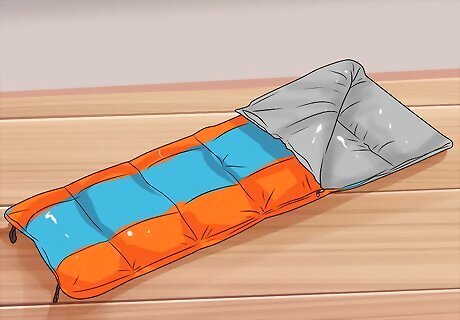 Pick a pillow. Though sleeping flat without a pillow may be the most natural position for the spine, many people can't sleep without some type of cushion under their head. Pillows, however, can add extra space and weight to your pack or may not be available. The good news is that many things can be used as a pillow if you improvise. You can use spare clothing or an insulated jacket as a pillow. If you can't spare any clothing, you can roll up a backpack and stick it underneath a blanket.