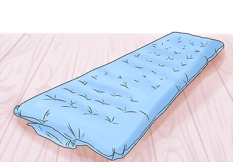 Cut your foam pad. If you're looking for extra lightweight material that takes up very little space, consider cutting your thin pad to torso length. To determine which parts of you touch the ground and will need insulation, lay down. Usually, this is just your back and heels, so cut down your pad to fit your back. You can use a hat, a backpack or some other material under your legs and feet for insulation.
