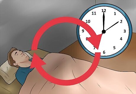 Stick to a schedule. One of the most effective ways of improving your sleep is to get into a routine. Try to go to bed at the same time each evening. You should also get up at the same time each day. Avoid sleeping in on weekends. Your body will get into a natural sleep rhythm if you stick to a consistent schedule. Try not to nap. Although can afternoon nap can seem delightful at times, try to avoid it. Napping can cause you to lie awake at night, and might increase your worries. Try to move around after dinner. Sometimes people eat a big meal and then doze on the couch. That can disrupt your sleep later. Instead, take a walk around the block.