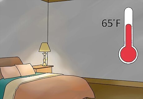 Change your environment. There are many factors that affect your quality of sleep. It is important to address your anxieties, but there are other ways that you can help yourself sleep, too. One way is to improve your sleeping area. Make sure your bedroom is at the right temperature. The ideal temperature for sleep is around 65°F (18.3°C). Avoid exposure to light. Your room should be dark and there should not be any glow from electronics. This means turning off your phone and your tv. Wear a sleep mask if your room is not dark enough. Limit the noise. Make sure your environment is quiet. If there is a lot of street noise, consider investing in a sound machine.