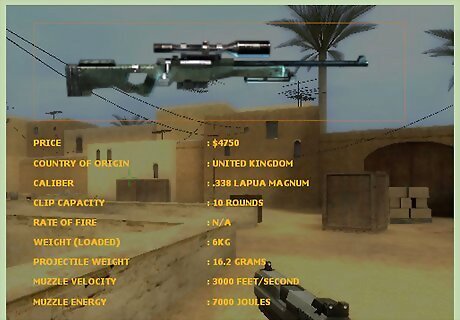 Choose your rifle. Different snipers have different preferences, but the most widely preferred sniper rifle is the AWP (Arctic Warfare Police) for its high power which results in a one-shot kill almost every time but remember that it is very hard to shoot when the enemy is near to you. Alternatively, you can choose the semi-automatic sniper rifle, which boasts increased fire rate at the cost of power.