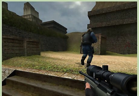 Be Patient. A sniper isn't a soldier who runs or jumps into a battlefield. In fact, you have to try to stay out of the battlefield as much as you can. Your rifle gives you the advantage of shooting from a distance. So don't get too close to the enemy. Wait until someone walks by, and shoot. It's not exciting, but you can get a lot of kills without dying.