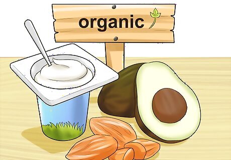 Choose organic food. The pesticides found in conventional food will slow down your metabolism, so you should choose organic foods wherever possible. Choose organic avocados, yogurt, almonds and other fatty foods whenever you have the chance.