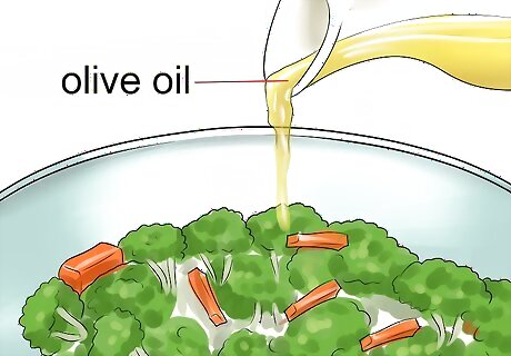 Dribble some olive oil on your favorite veggies. Olive oil has lots of healthy fats and increases seratonin, which is a hormone that tells your body it is satisfied. It also has antioxidants, which are very important for fighting a number of diseases including cancer and osteoporosis. You can purchase olive oil from most healthfood and grocery stores, but you should try to find “extra virgin” and pure olive oil. It is best to enjoy it raw, dribbled over fresh vegetables.
