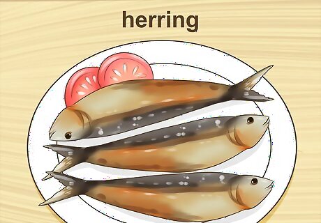 Integrate more herring into your diet. A three ounce portion of cooked herring has 1,500 milligrams of omega-3 fatty acids. By integrating more herring in your diet, you will get the omega-3 fatty acids that should help speed up your metabolism. There are lots of ways to get more herring in your diet, such as herring salads, pickled herring, cooked herring, smoked herring or herring rolls.