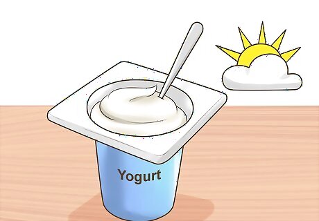 Eat yogurt in the morning. If you are looking to lose weight, it’s not a good idea to skip breakfast. Try eating a cup of yogurt in the morning to speed up your metabolism. A cup of whole milk yogurt has 149 calories, including 8 grams of fat, 11 grams of carbohydrates and 9 grams of protein. Yogurt also has lots of healthy bacteria, which is good for your digestive system.