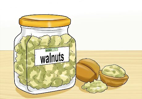 Snack on some walnuts. Put a few walnuts in a sandwich bag and eat them as a snack during the day. You can keep your metabolism up by eating regular small meals, which prevents the body from going into starvation mode and falling into a reduced metabolism. Walnuts are high in omega-3 fatty acids and can help increase your metabolism. Mix walnuts with blueberries and dark chocolate for a delicious snack.