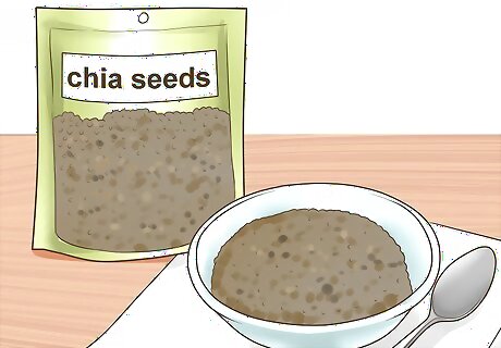 Eat chia seeds. Put chia seeds on your cereal in the morning. Eat them as a snack on their own during a break at work, or sprinkle a few on your rice at dinnertime. Alongside flax seeds and salmon, chia seeds are one of the top ranking foods for highest amount of omega-3 fatty acids. They contain lots of fiber, phosphorus, manganese, copper, iron, niacin, zinc, healthy fats and antioxidants. They store well, so just keep them in your cupboard and sprinkle them on your cereal or rice when you feel like it. One hundred grams of chia seeds has 490 calories, including 31 grams of fat and 16 grams of protein.