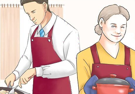 Cook dinner together. Host a large dinner party with your adult children. Cooking with your adult children can be great fun, and it can be a great way to pass along family recipes and stories. For the ultimate adventure, choose a dish that neither you nor your children have ever made before. That way, you’re all learning together. Make a big batch so you all have some leftovers you can take home for the next few nights.
