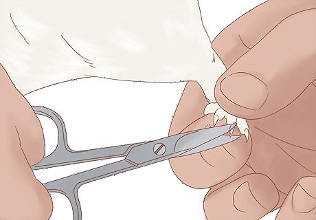 Trim your rat's nails. This will help prevent your rat from reopening the wound by scratching at it. Regular trimming may also aid in averting future lacerations from developing. Consider buying specialty nail scissors that are sold in most pet stores. They offer better grip than human nail clippers, which is important, as you'll have to hold your rat in one hand while cutting the nails with the other. Cut the clear part of the nail only. Cutting into the pink vein (aka the quick) will cause your rat to bleed. Have cornflour on hand to stem the bleeding in case you accidentally cut the vein.