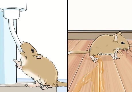 Be aware of excessive drinking and urination. Excessive thirst is a possible symptom of ovarian cysts, which will result in a lot of drinking and urination. Keep track of how much water your gerbil drinks each day from its dish or bottle to spot an increase. When you are changing the bedding in your gerbil's habitat, note if it is more soiled with urine than usual. Clean your gerbil's cage at least once a week, and monitor its drinking and urination habits at the same time. If your gerbil seems to be drinking and urinating a large amount, try cleaning its cage more often (e.g., twice a week.) Be sure to consult your vet about these symptoms, which may also be due to more serious ailments like diabetes or kidney disease.