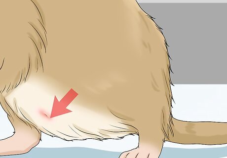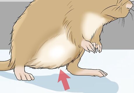 Observe your gerbil's body shape. Look for changes in your gerbil's body, particularly in the abdominal area. An ovarian cyst may protrude from your gerbil's side, or from its abdomen, making it look pregnant. Note if your female gerbil is starting to look bell or pear-shaped, which is a strong indication an ovarian cyst. A swollen abdomen could also be a tumor or pregnancy. Watch your gerbil for other signs of an ovarian cyst. Take note of the quality of their coat as well. Ovarian cysts can sometimes cause hair loss, creating a patchy coat.