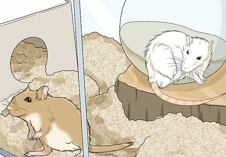 Take note of litter sizes. Ovarian cysts can also reduce the number of gerbil pups produced in a litter. If your gerbil only gives birth two one or two pups, this may be due to a cyst or other abnormality. Observe the number of pups your gerbil produces, which should normally be around five or six. A mother gerbil may neglect its pups if the litter is too small, which often results in them dying after a day or two.