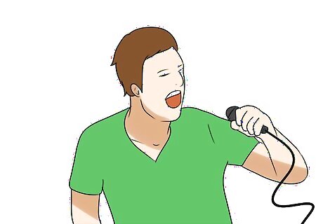 It's the big night, your crowd is excited, you're ready to make history in your school. Don't be nervous; if you practice enough, you'll be fine. Before you play: it always helps for the singer to take a sip of water to get his/her vocals flowing. And don't practice much on the day of the gig, you don't want to be worn out when it's time for the real deal. Pass out some merchandise. Make CDs of the songs you've covered, and pass them out at your gig. Band t-shirts, toys, books, tableware, mugs, furniture, and other items would be good too. Clothing and shoe sizes may vary depending on the item. Each sold separately.