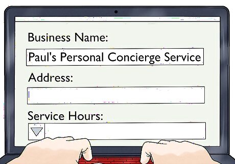 Come up with a memorable name for your business. The name is going to be what people use to find your business, so try to come up with one that is catchy and descriptive. It should let people know what your business does and also be something that they will easily be able to recall. Something like Paul’s Personal Concierge Service lets customers know that they will receive personal attention and the alliteration might help them remember it. Run a quick Google search to make sure there is not already a business with the name you want to use.
