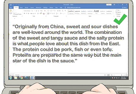 Tell a personal story about the dish. Giving a little background about the origin or history of a certain recipe will make it more personal and emotionally compelling for the reader. You can also tell a story about the last time you prepared the dish or a memorable moment that stuck out to you while cooking it. Try to paint a picture of the experiences you’ve had while cooking. For instance, if the recipe is a family recipe, you can tell a childhood story about cooking the dish with your readers. If you had to cook the dish for a special event, tell the reader about the event.