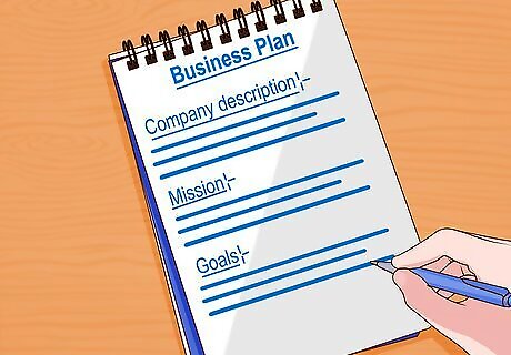 Write a business plan. A business plan is a document that lays out the groundwork for your business. For a small self run photography business, you should not need an extensive plan. However, it's a good idea to have a rough outline of a business plan to refer if you decide to expand your business in the future. Your plan should include your company's description, mission, and goals. Think about the general philosophy behind your business and the kind of market you're trying to reach. Think about how your business is structured. Figure out a loose organization for things like money, time, and resources.