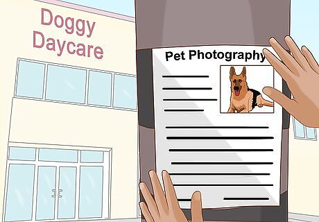 Advertise in an area with a solid market. Placing flyers and cards around your hometown can help you gain clients, but only if you're targeting an area where there's a market for your work. Think about neighborhoods where people tend to have a lot of pets. In addition to having pets, look for areas with businesses like doggy daycares and spas. This indicates people are willing to spend a lot of money on luxuries for their animals.