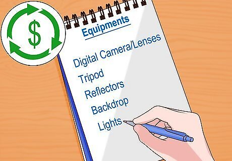 Invest in quality equipment. You will need technical equipment, including a digital camera, tripods, reflectors, and various lenses for different types of shots. If you work indoors, you'll need a backdrop to shoot against, as well as a backdrop stand. You will also need to invest in lights designed for photography studios if you plan to shoot indoors. For a camera, look for a DSLR camera and use a prime lens with autofocus. If you don't know how to use your camera or other equipment, read the manuals carefully before getting started. You can also watch tutorials online or consider taking a photography class.