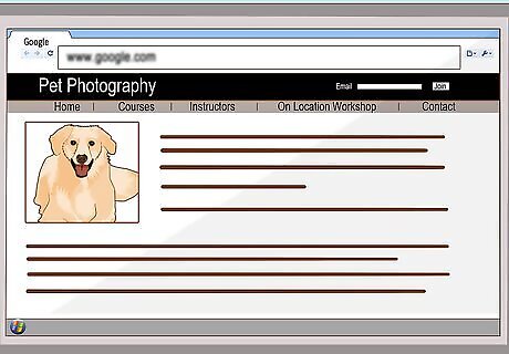 Take some photos of your own pets. You'll need a portfolio that you can upload online to attract clients. Not only can taking pictures of your own pets help show off your skills, it will give you some practice. Take a handful of quality pictures of any pets you have and upload them to your social media pages and website. If you don't have pets of your own, ask friends and family members if you can photograph their pets for your website.