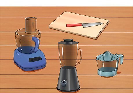 Get the proper kitchen appliances. A raw vegan diet requires different appliances than a traditional diet. You will need a juicer, dehydrator, blender, food processor, and hand blender. You may also want to get a mandolin or vegetable slicer. You also will need a food thermometer, cutting board, and knives. These can all be purchased at a department store.