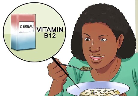 Eat sources of vitamin B12. Sources of vegan-safe vitamin B12 include fortified cereals and fortified yeast products. You can mix with nuts or seeds to make a snack mix.
