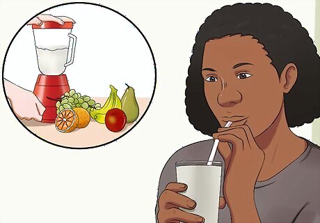 Make smoothies. Smoothies are one of the best ways to eat raw. Throw in all sorts of fruits and vegetables. Smoothies make good breakfasts and snacks.