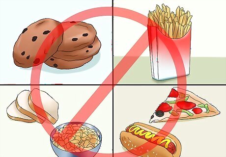 Eliminate foods from your diet slowly. By transitioning to a vegan raw diet, you will eliminate a lot of foods from your diet, like sugar, salt, dairy, grains, and processed foods. Start slowly. Try getting rid of one food type at a time. This can help you ease into this new eating lifestyle. Refined forms of sugar, like dextrose, corn syrup, rice syrup, and malt, should be avoided. You can substitute with raw honey, raw agave, maple syrup, raisins, or dates. Stevia, coconut sugar, vanilla, and cinnamon are best. Also don't use artificial sweeteners, like aspartame and Splenda. Stay away from all white or processed sugars. Salt should be eliminated from your diet. However, some people on raw diets use minimal salt. If you are going to use salt, don't use table salt or salt without any chemical additives, like iodized salt. Instead, use unrefined sea salt, or organic salt from plants, like celery or seaweed.