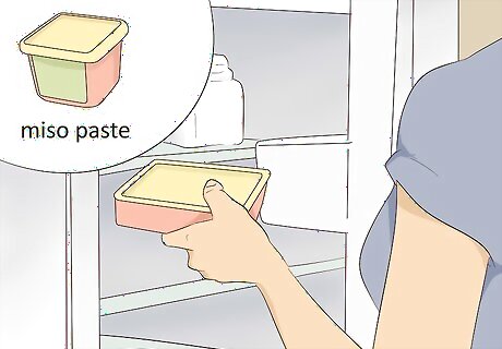 Keep miso paste in the refrigerator. Get white, red, or yellow miso in the refrigerated section of an Asian market or grocery store. Miso is a thick paste made from fermented soybeans and it can add a burst of flavor to soups, roasted vegetables, marinades, and sauces. Although miso paste is a pantry staple, you'll need to keep it in its airtight container in the refrigerator. It will last 9 months to 1 year. Use the miso to make classic miso soup or stir a spoonful into vinegar to make a marinade for meats.