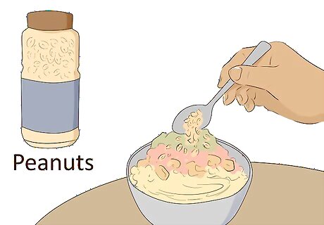 Get a jar of peanuts. Many Southeast Asian recipes use peanuts to add texture and a buttery flavor. Sprinkle chopped, roasted peanuts over curries, stir fries, or salad rolls. You can also grind the peanuts into flavorful dipping sauces. Try garnishing Thai noodles with crushed peanuts. You can also use cashews in many Chinese-American dishes, such as cashew chicken.
