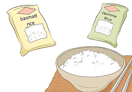 Purchase a few kinds of rice. Rice is a great base for many classic Asian meals. Instead of relying on the same type again and again, keep a few types of rice in your pantry. Jasmine and basmati rice work well with most meals or you could use brown rice to add a chewier, nutty texture to a dish. For Japanese recipes, consider using sushi rice or a Japanese short-grain rice. Serve your Asian meal with a side of rice or stir rice directly into soup. You can even make sticky rice to serve with sweetened fruit.
