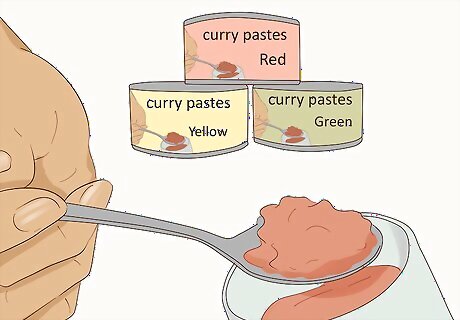 Get a few curry pastes. Curry pastes are an easy way to add an incredible amount of flavor to curries, stews, sauces, and soups. Look for concentrated curry pastes that are sold in small jars instead of simmer sauces. Try a few of the these curry pastes: Red Green Yellow Panang Massaman
