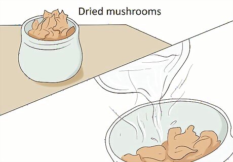 Keep dried mushrooms. Dried mushrooms are often used to add the umami flavor to Asian foods. You can rehydrate dried shiitake mushrooms in hot water and cook with them. Recipes might also call for the soaking liquid to add an extra mushroom flavor to meals. Soften and cook the mushrooms with beef stir fries or in mushroom curries.
