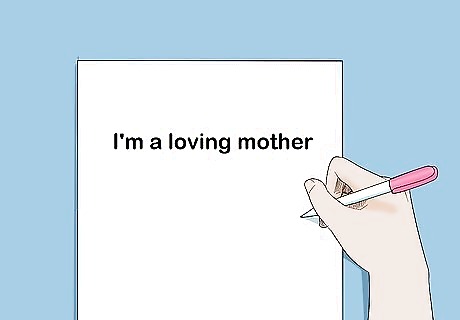 Create a running list of “good things” about yourself. Do you give yourself credit for all your accomplishments? What about your positive characteristics? If not, take out a sheet of paper and write them down. When you take the time to recognize your great qualities, you'll have a more positive outlook overall. You might include things like “I'm a loving mother” or “I earned my degree.” Whatever they may be, just write down all the awesome stuff about you! Post the list somewhere you can see it daily. Add to it as you think of new great qualities or achieve new feats.
