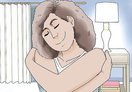 Perform loving-kindness meditation for 10-15 minutes every day. Spend some time daily sitting in silence and radiating kind, positive thoughts about yourself. You might reflect on some of the qualities from your “good things" list or merely imagine pouring love into yourself, like a mental hug. You might also progress to choosing a woman in your life to radiate positive thoughts to. Start with someone you feel warmly about. Once you've got the practice down pat, gradually radiate positive thoughts to someone who you have disliked or pre-judged in the past. Mentally extend an olive branch to her.