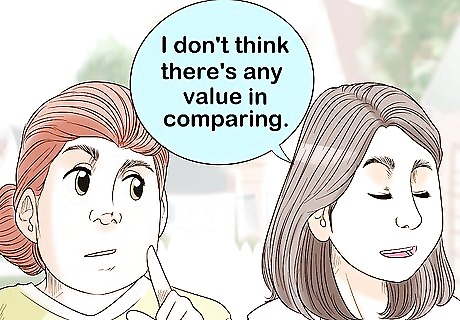 Redirect others who make comparisons. Comparisons are unfair and useless, as there will always be someone more attractive, more intelligent, or more wealthy. If you notice your mom, sister, or friend comparing herself to someone else (or you to someone else), speak up. Try a remark like, “I don't think there's any value in comparing. You two aren't the same, and, frankly, being different is what makes you so special.” If you constantly feel put under a microscope with certain gal pals, you might consider getting some distance and spending less time with these people.