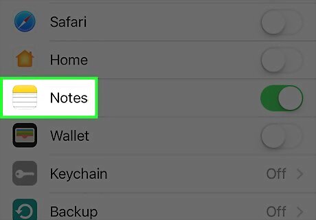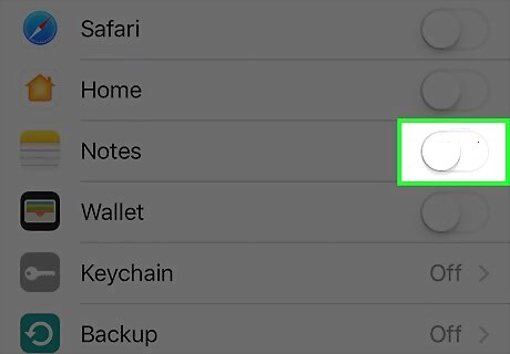 Slide the Notes switch left to the "Off" position. It should turn grey. Doing this doesn't delete your notes from your iCloud account, but it does prevent your iCloud notes from appearing in your Notes app.