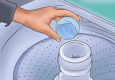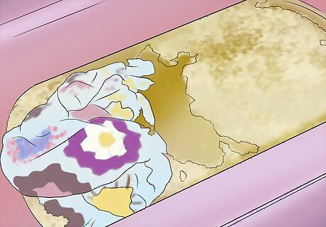 Wash the quilt in the bath. If you've answered the above questions to your satisfaction, consider washing by hand. Machine washing is really only suitable for very strong quilts (or those cheap ones made in China that you intend to only hang on to for a short time). The bathtub is the best place as it's big and there's plenty of room to maneuver. Ideally, you will need a helper to wash and lift the wet quilt. Fill the bath about 8 inches/20cm with lukewarm/tepid water. (If your local water is hard, consider using distilled water or rainwater from the tank, heated in a kettle or saucepan.) Lower a large sheet into the bath first. This acts as a "sling" for the quilt. Gently lower the quilt onto the sheet. Press gently across the quilt. Swish the water around gently, but not the quilt; keep it steady. If using a detergent, make sure it is suitable for the quilt. Ask at a local quilt retailer or society for advice on a suitable detergent. A wool wash will usually be okay if you can't find a specialized detergent but dilute it before adding it to the bathwater. Drain the water, taking care to keep the quilt away from the drain suction. Refill with lukewarm water for a rinse cycle. Gently agitate, drain again. Do this about 4 to 6 times until you feel the quilt has been cleaned adequately and the detergent is off the quilt. Drain one last time. Pat the quilt with large dry and clean towels. These will start to absorb leftover water from the quilt. Lift the quilt out of the bath by holding the corners of the sheet it is sitting on. Carry it outside to dry (see Airing above, although you may wish to substitute a blanket for a sheet on the ground). This really needs to be done with a helper, to prevent a mishap (and wet quilts tend to be heavy). When drying, place right side down to keep this as clean as possible. Allow to dry completely. It should not be stored until it is completely dry, to avoid the possibility of mildew growth.