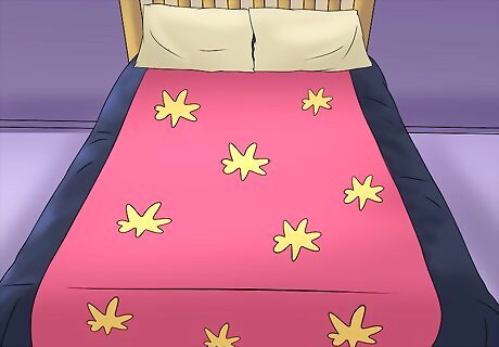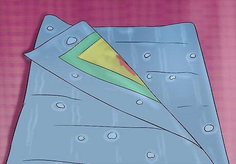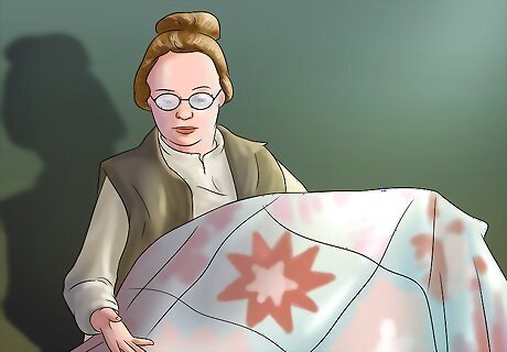 Place the folded quilt inside a suitable protective cover. The cover will protect it from insects, dust and other sources of potential damage. Cover with a cotton pillowcase or similar cotton sack. A large cotton sheet or length of muslin can improvise as a cover. Plastic is not an ideal covering; it can sweat (creating humidity) and some plastic bags may even leach colors from dyes and damage the quilt, especially with long-term storage. Anything that the quilt is stored in or on must be acid-free.