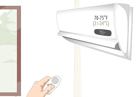 Set the temperature in the room at about 70 to 75 °F (21 to 24 °C). Your guitar will get warped or damaged if it gets too hot or too cold. Keep your thermostat set between 70 to 75 °F (21 to 24 °C) so your guitar stays at an ideal temperature. If your location is experiencing extreme heat or cold, it’s best to place the guitar in the center of your home. This will help keep the guitar at a proper temperature. The temperature is most consistent at the center of your home.