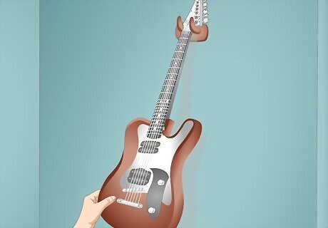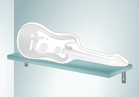Pick a wall mount if you lack floor space for a stand. You might not have room for a traditional floor stand. If this is the case, install a guitar wall mount to store your guitar. Hang the wall mount high enough that your guitar will be protected from accidental bumps. Use a screwdriver to screw the wall mount into a stud so that it's stable. If you can't find a stud, install pilot holes into the wall before you screw in the wall mount. Wall mounts are sturdy if you follow the installation directions that come with your mount. However, it’s possible for your guitar to warp if it’s stored over a long period of time. Additionally, it may get damaged if you knock it off the wall.Tip: As a bonus, a mounted guitar doubles as a wall decoration.