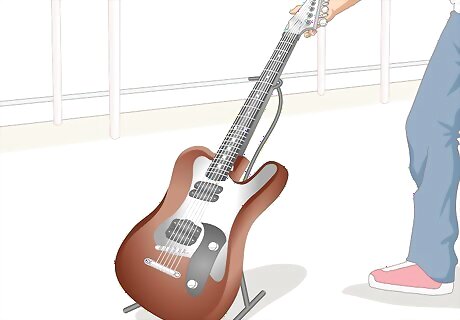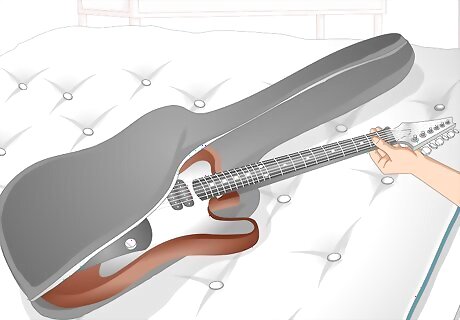 Store your guitar in its case for added protection. Your guitar might get damaged if it’s bumped or knocked over. Similarly, it might get covered in dust and dirt, which can alter how it plays. Keep your guitar in its case when you’re not playing it to keep it safe. If you prefer to keep your guitar out on a stand, play it every day so that it doesn’t build up dust. Additionally, run a clean dust rag over it once a week to remove any dust that might have stuck to the guitar.