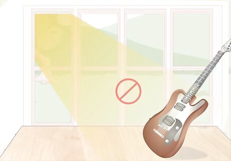 Keep your guitar out of direct sunlight to protect it from heat and light. Unfortunately, direct sunlight can damage your guitar. The rays from the sun may hurt the guitar, and the heat might warp the wood and cause damage. Place your guitar where the sunlight won’t strike it. Don’t store your guitar near a window unless it’s covered by a curtain. If you can, keep it in a room that doesn’t get sunlight just to be safe.
