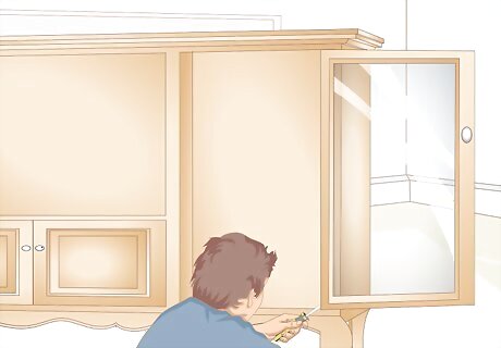 Repurpose an old entertainment center for a budget-friendly option. Guitar cabinets can be pricey, so you may prefer a DIY option. Pick up an old entertainment center from an online ad, yard sale, or thrift store. Then, add an adhesive rubber seal around the edges of the door to keep out dust. Then, add a small humidity system that you can purchase at a home improvement store or online. If you’re storing multiple guitars, place stands inside the unit or add a wooden divider to keep them from falling over. A small humidity control system will cost between $30-$100, though you can find more expensive options.